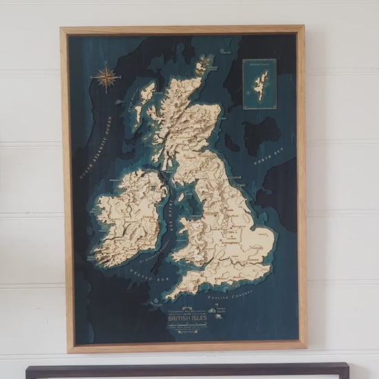 Wooden Map Art of The United Kingdom | British Isles Framed Map Gift